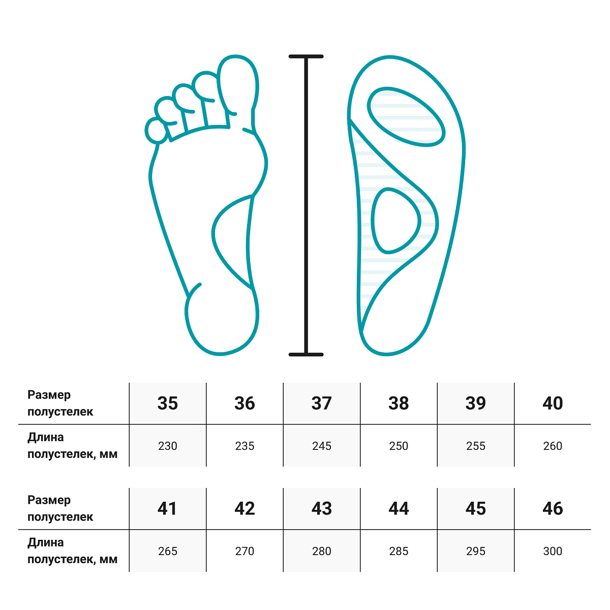 Тип стелек Полустельки