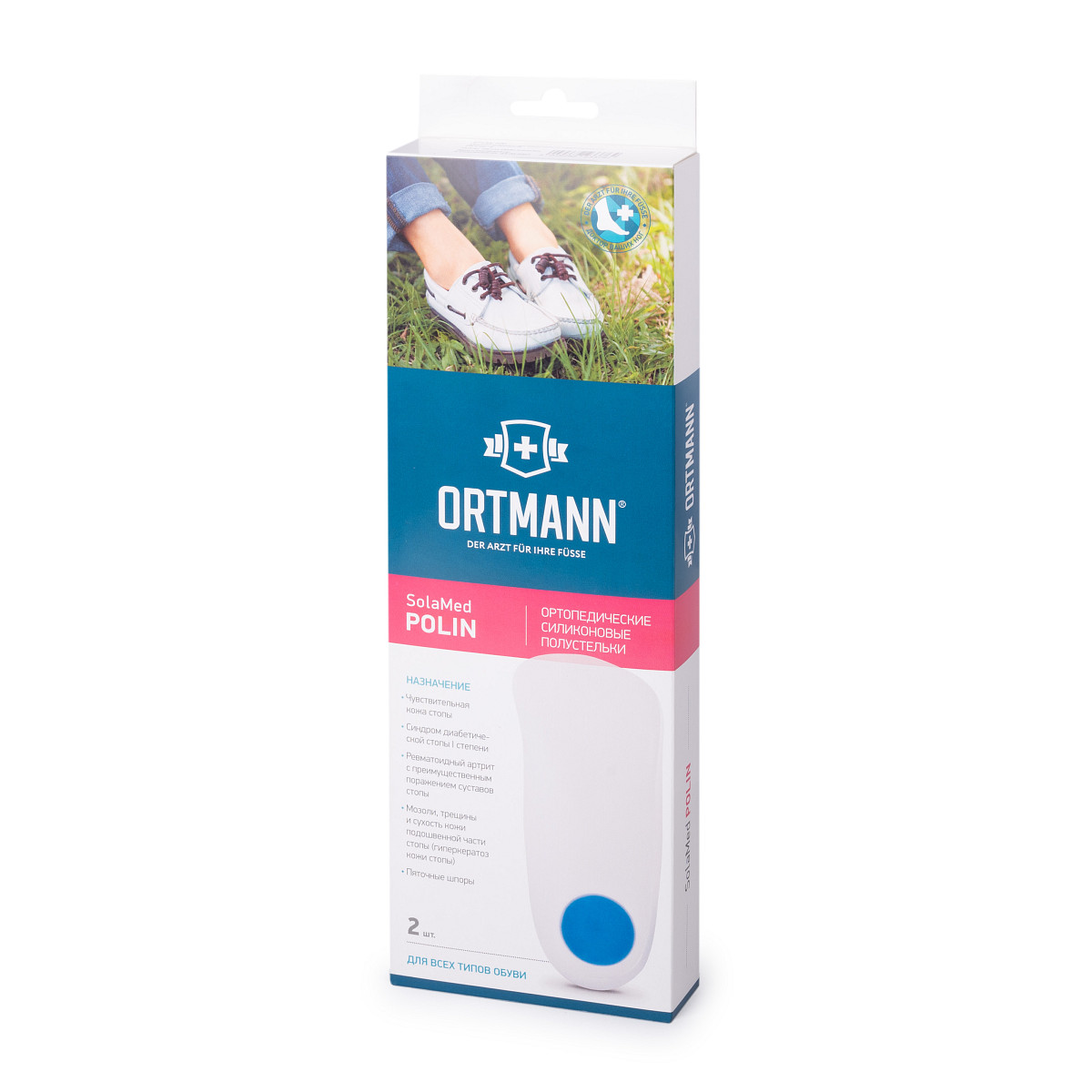 Ортопедические силиконовые полустельки ORTMANN SolaMed Polin идеально подходят для чувствительной стопы, улучшают самочувствие и повышают сопротивляемость к нагрузкам. Они эффективно уменьшают ударную нагрузку на стопу во время ходьбы и предотвращают появление боли и дискомфорта на фоне сухости и трещин на подошве стопы. Разгружают позвоночник и суставы.